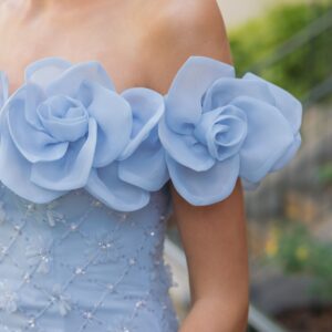 - Ärmelloses Design mit floralen Organza-Akzenten