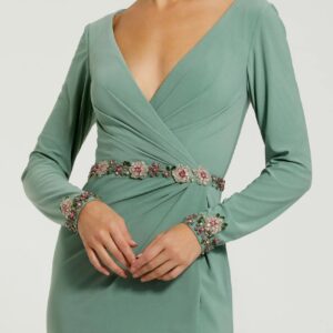 - Verzierter Bund und Ärmelbündchen mit floraler Perlenstickerei