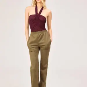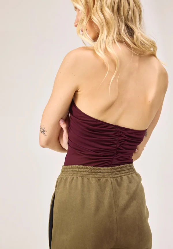 Dieser bordeauxrote Body aus Viskose des Pariser Labels ATLEIN verkörpert den skulpturalen und sinnlichen Minimalismus der Marke. Die Halterneck-Silhouette rahmt die Schultern elegant ein und schafft eine verlängerte, raffinierte Linie, die charakteristisch für ATLEINs fließende, architektonische Ästhetik ist. Gefertigt aus einem leichten, bewusst transparenten Viskosestrick, fällt der Body mühelos und zeichnet die Konturen des Körpers dezent nach. Das Modell verfügt über ein unkompliziertes Hineinschlüpf-Design mit Druckknopfverschluss im Schritt, das Komfort und eine präzise Passform gewährleistet.