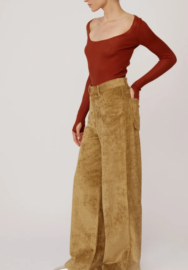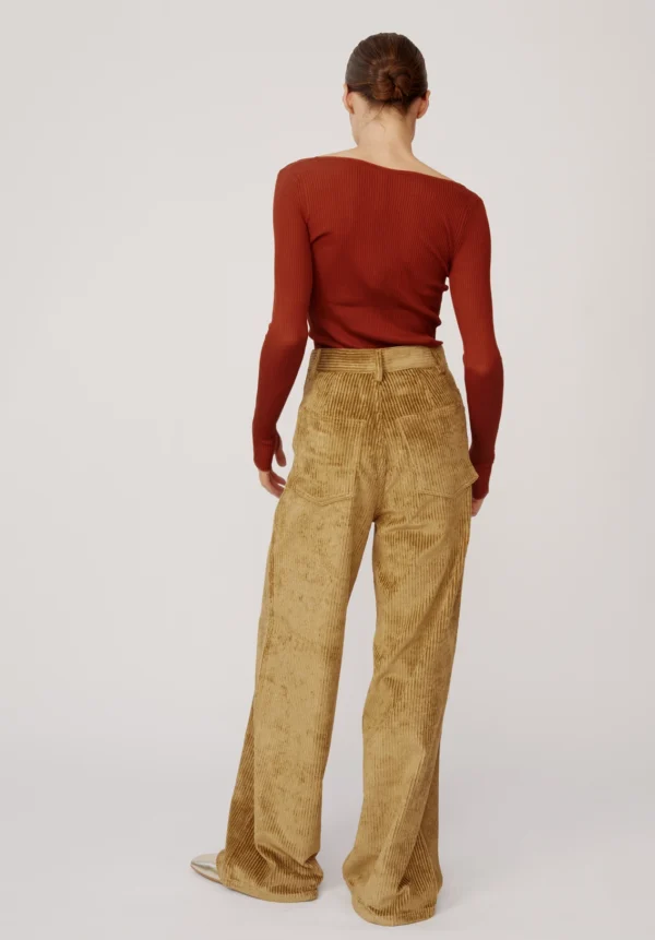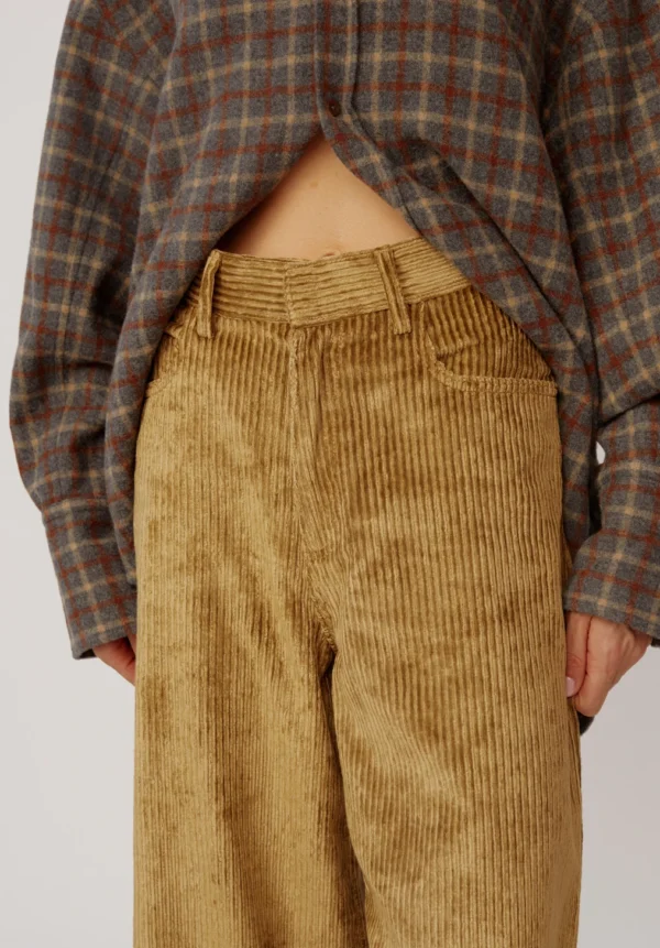 Die „Harbor“-Hose von PETAR PETROV interpretiert klassische Schneiderkunst durch die Linse der vom Stil der 90er-Jahre inspirierten Lässigkeit neu. Gefertigt aus breit geripptem Baumwoll-Viskose-Cord mit markanter, haptischer Oberfläche, fällt sie in eine lockere, verlängerte Silhouette mit hohem Bund, die eine entspannte, zugleich aber bewusst geformte Linie verleiht. Abgerundete Fronttaschen und charakteristische aufgesetzte Gesäßtaschen unterstreichen den utilitaristischen Charakter, während Reißverschluss und Metallhakenverschluss das Design veredeln. Kombinieren Sie sie mit dem Stricktop „Muse“ von PETAR PETROV.