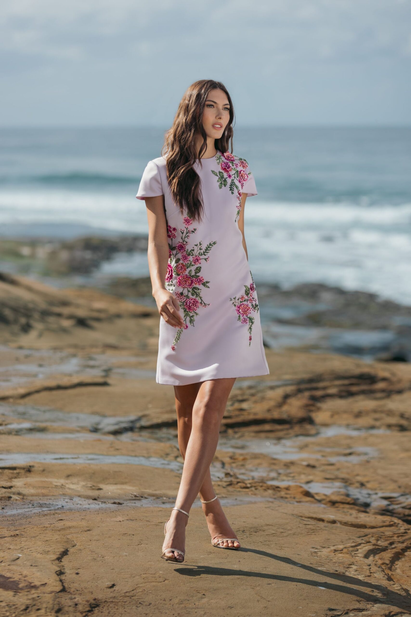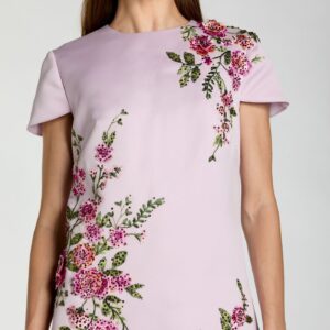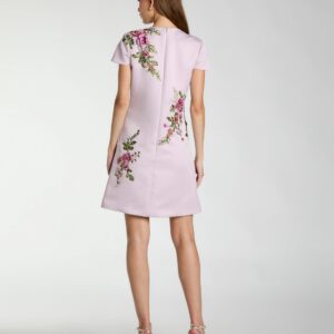 Dieses Minikleid ist perfekt für Cocktailpartys und Hochzeiten und vereint zeitlose Eleganz mit modernem Charme. Es ist aus glattem Satin gefertigt und besticht durch einen hohen Halsausschnitt, kurze Ärmel und wunderschöne, farbenfrohe Stickereien.