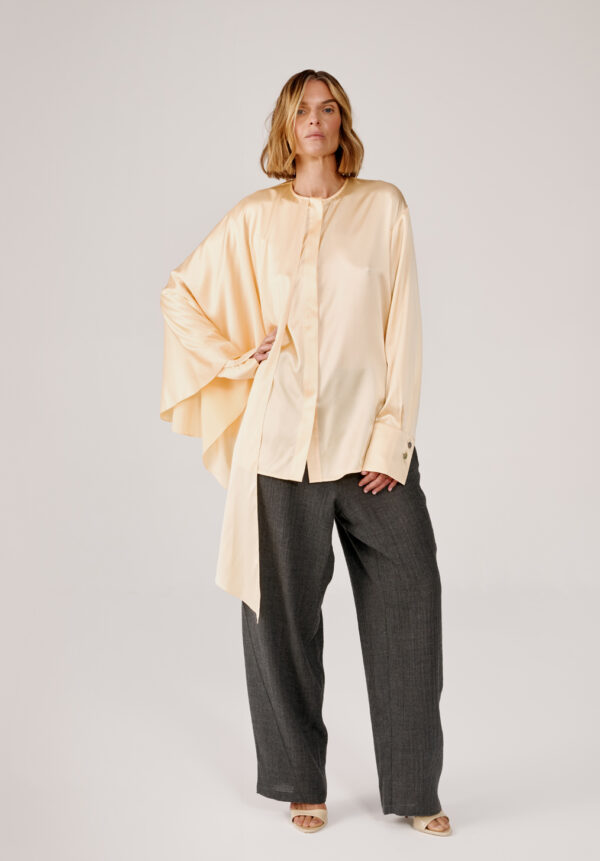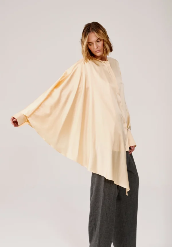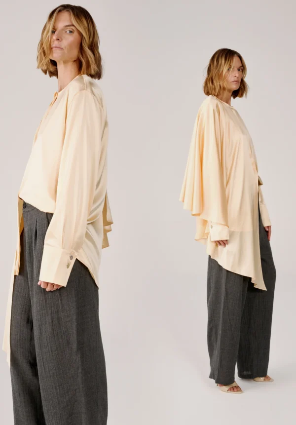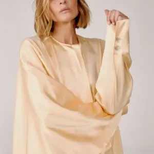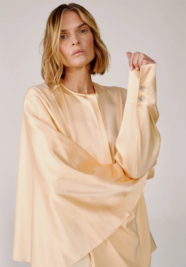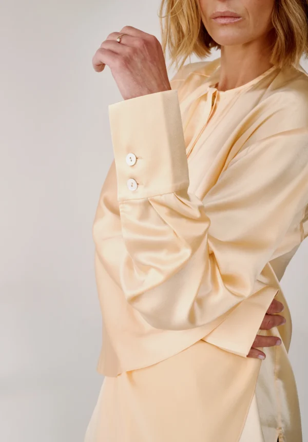 Das luftige Hemd aus Bio-Seide von MATERIEL in Buttergelb ist aus 100 % Seide gefertigt und fällt fließend und leicht. Es verfügt über eine verdeckte Knopfleiste, geknöpfte Ärmel und einen angenähten Seitenschal und lässt sich vielseitig auch als Minikleid stylen.