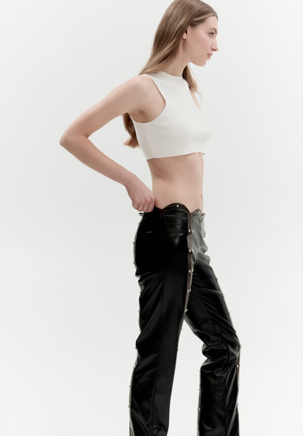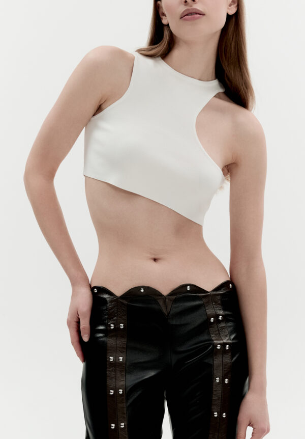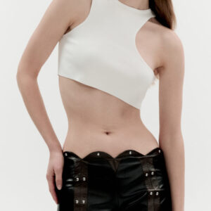 Dieses Crop-Top von MATERIEL aus Viskose-Strickstoff verkörpert modernen, urbanen Stil in minimalistischer Manier. Der figurbetonte Schnitt schmeichelt der Silhouette, während der markante, asymmetrische Ausschnitt für einen sinnlichen Touch sorgt. Der weiche, atmungsaktive Stoff schmiegt sich wie eine zweite Haut an den Körper. Das Top kann als Basis für lässige Alltagsoutfits oder unter einem Oversize-Blazer getragen werden.