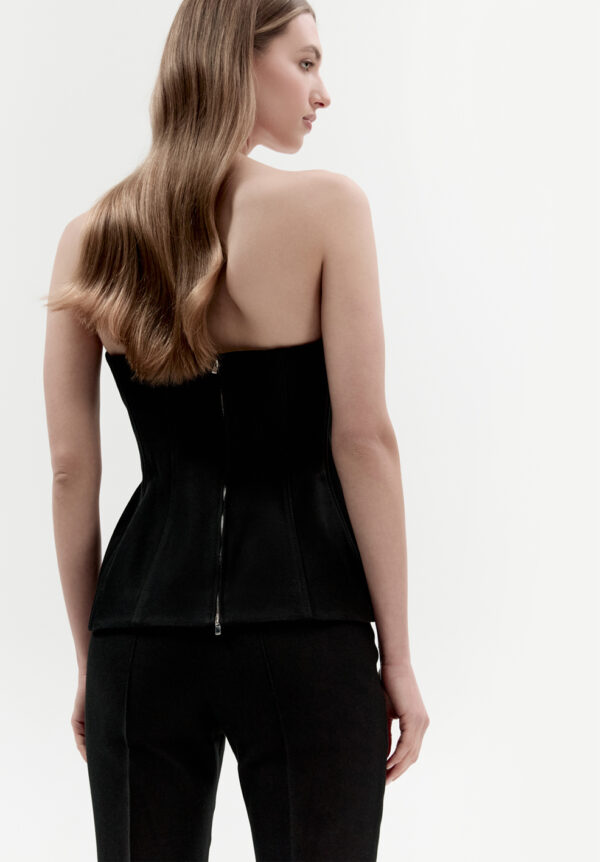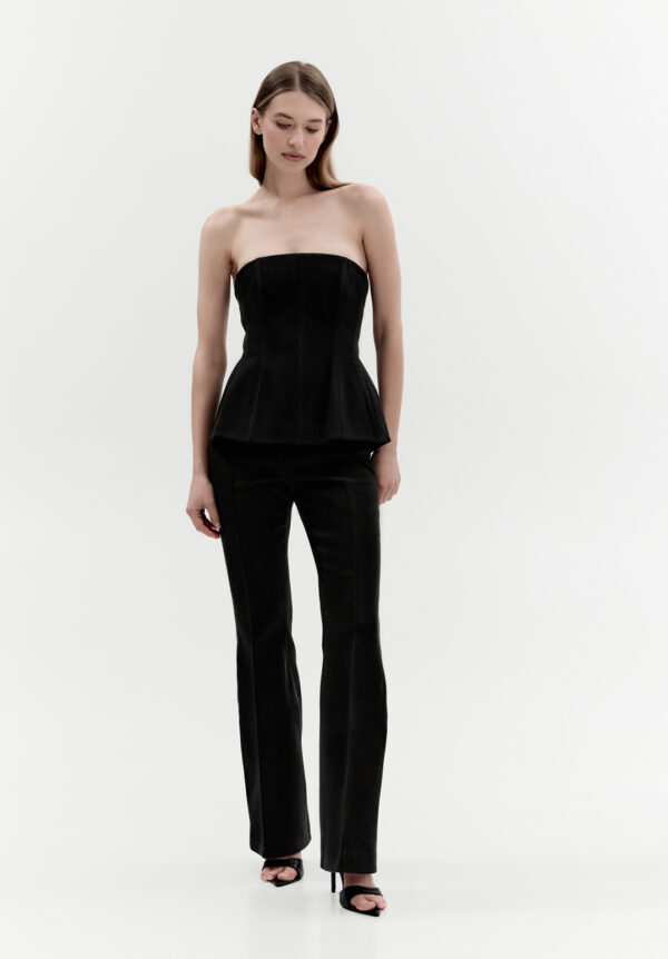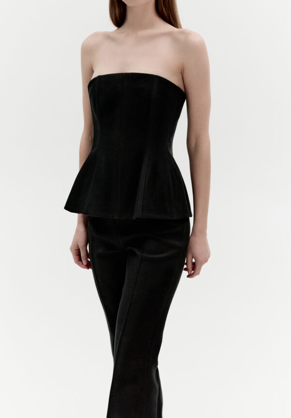 Das elegante schwarze Peplum-Top von MATERIEL vereint Raffinesse und Funktionalität. Gefertigt aus hochwertiger Baumwolle mit figurbetontem Futter, betont es die Silhouette perfekt und zaubert eine dezent definierte Taille. Die strukturierte Form verleiht Charakter und sorgt gleichzeitig für höchsten Tragekomfort. Ein Klassiker mit modernem Touch, der sowohl solo als auch als Basis für ausdrucksstarke Outfits überzeugt. Kombinieren Sie es mit einer geraden Hose von MATERIEL und einem Oversize-Blazer von MATERIEL für einen schicken Look.