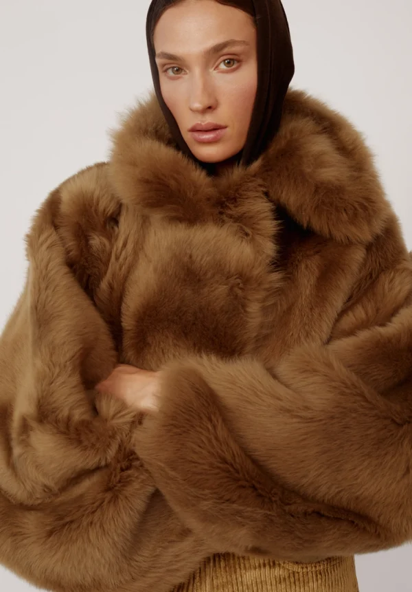 - Kurzer, auffälliger Kunstpelzmantel mit Knopfverschluss
