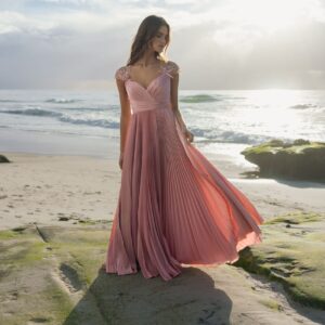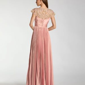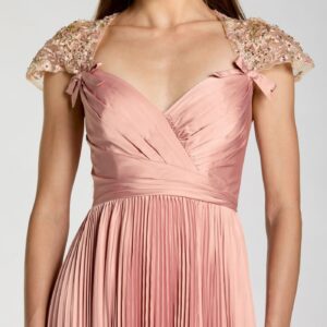 Rosa plissiertes Charmeuse-Kleid mit verzierten Flügelärmeln