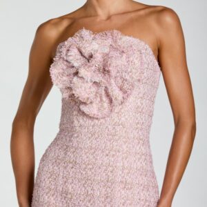 Rosa trägerloses Bouclé-Midikleid mit 3D-Blume