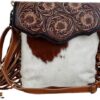 Sadie features an adjustable guitar strap and fringe! The inside is lined with inner slip and zip pockets.