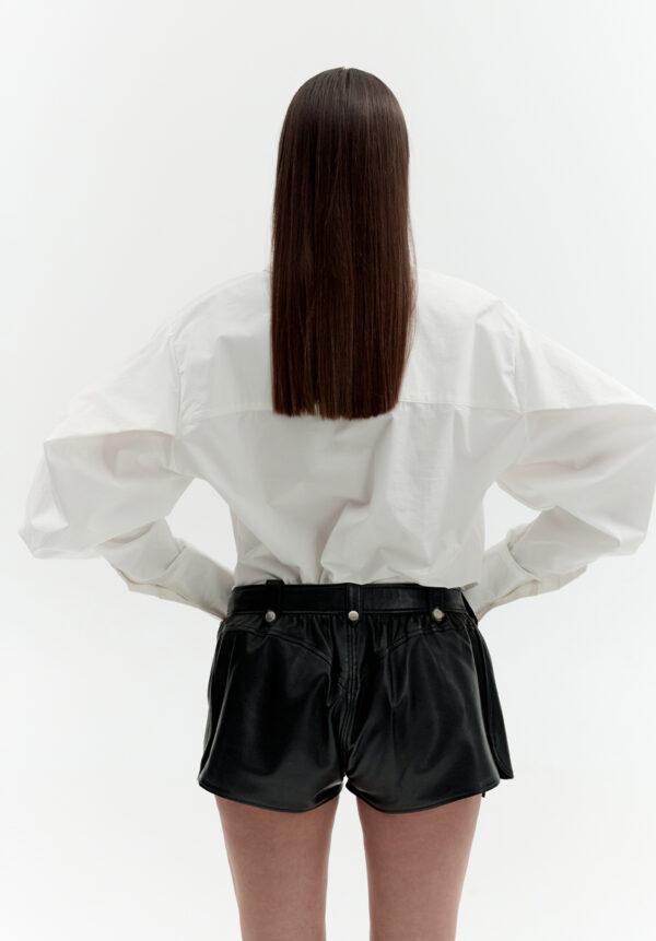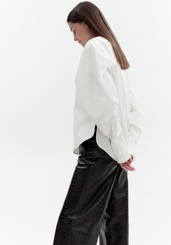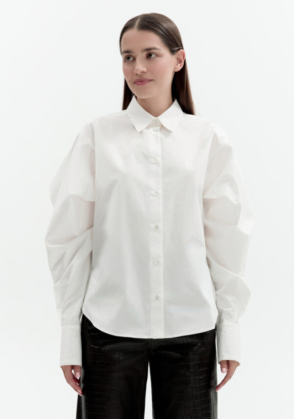 Das übergroße weiße Baumwollpopelinehemd von VAILLANT verkörpert Pariser Lässigkeit mit einem modernen Touch. Voluminöse Ballonärmel verleihen dem klassischen Hemd eine authentisch-schicke Note. Ideal für formelle Anlässe wie auch für legere Gelegenheiten. Dieses Laufstegmodell stammt direkt vom Laufsteg der VAILLANT Frühjahr/Sommer-Kollektion.